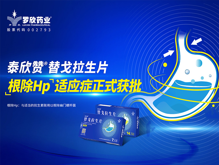 羅欣藥業(yè)創(chuàng)新藥替戈拉生片(商品名:泰欣贊?)新適應癥“與適當的抗生素聯用以根除幽門螺桿菌”獲批上市